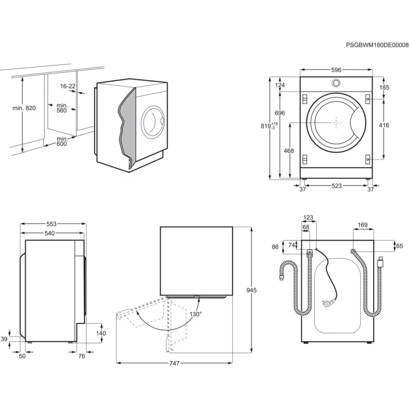 AEG L7FNE748SI invertermootoriga integreeritav pesumasin 7 kg, 1400 p/m, auruf-n