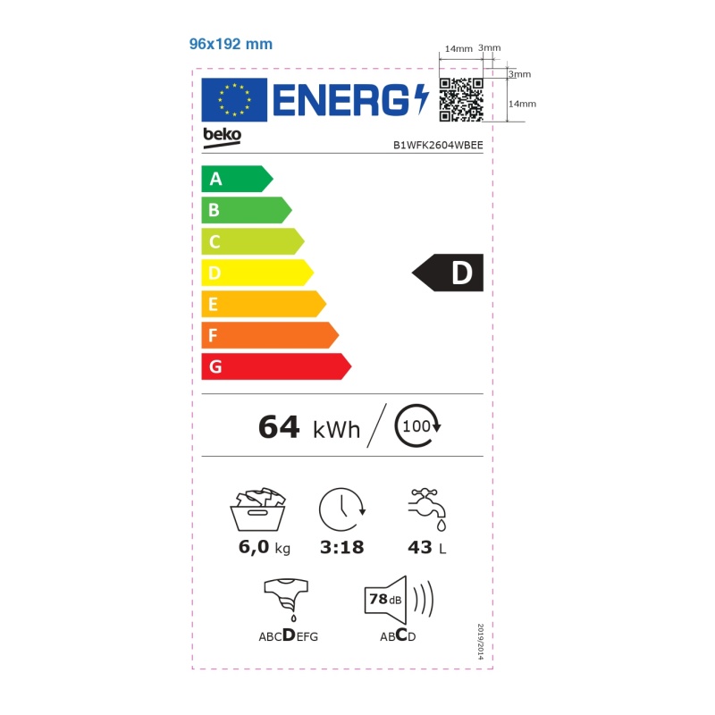 Pesumasina mahutavus kuni 6 kg, energiaklass D, reguleeritav tsentrifuugi kiirus kuni 1000 p/min, digitaalne näidik, viitstart 0-24 h, 15 programmi, müratase 78 dB, k*l*s 85*60*45 cm, värv valge