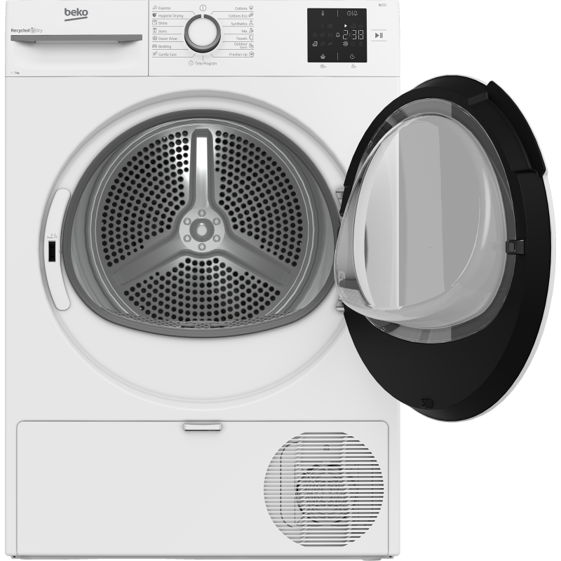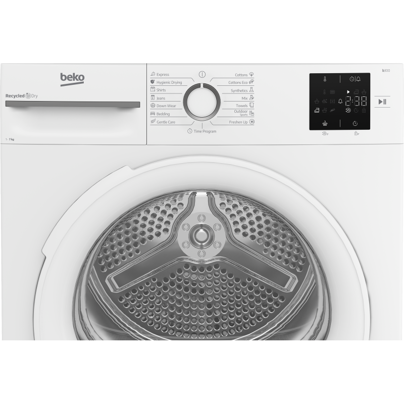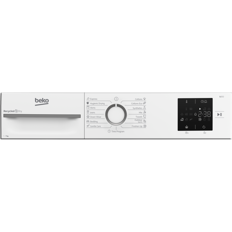 Beko BM3T372E0W kitsas, lauaplaat 47 cm soojuspumbaga pesukuivati 7 kg