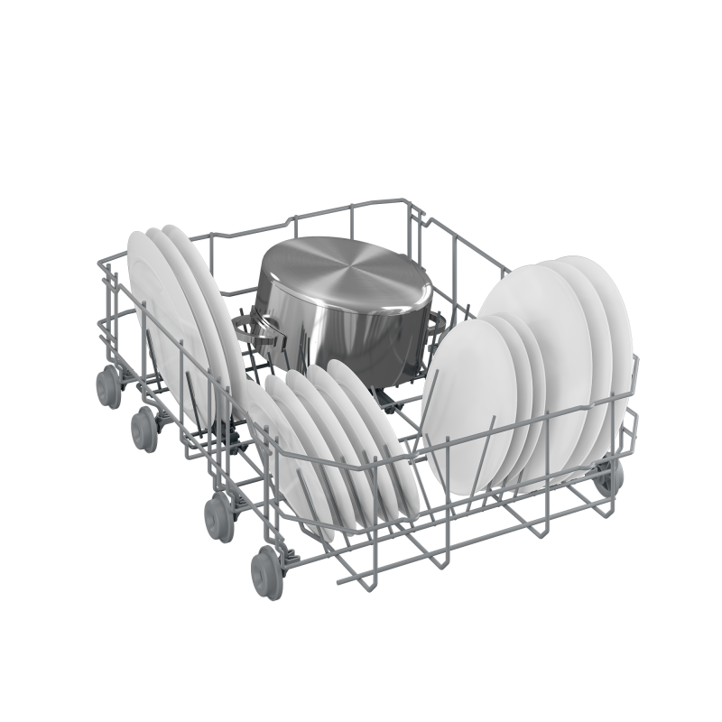 Reguleeritavad taldrikutoed - tugede kokkupanemise funktsioon võimaldab nõudepesumasina korvis tekitada lisaruumi suurematele nõudele, nt suurtele pannidele ja pottidele.