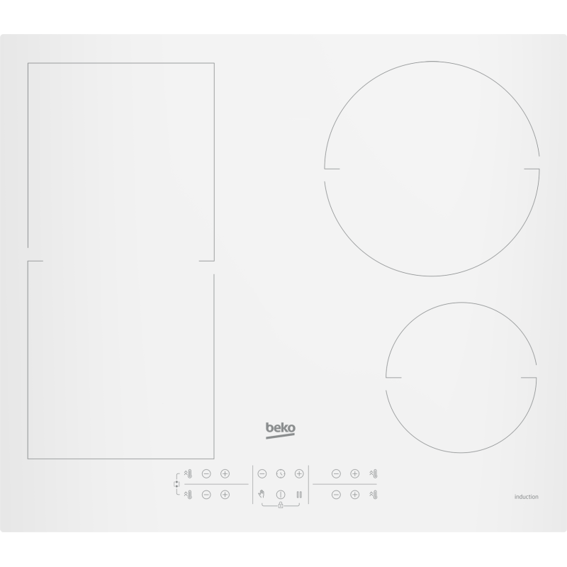 Beko HII64200FMTW 2 ühendatava alaga 4 keedutsooniga integreeritav induktsioonplaat, 60 cm valge