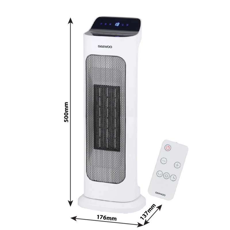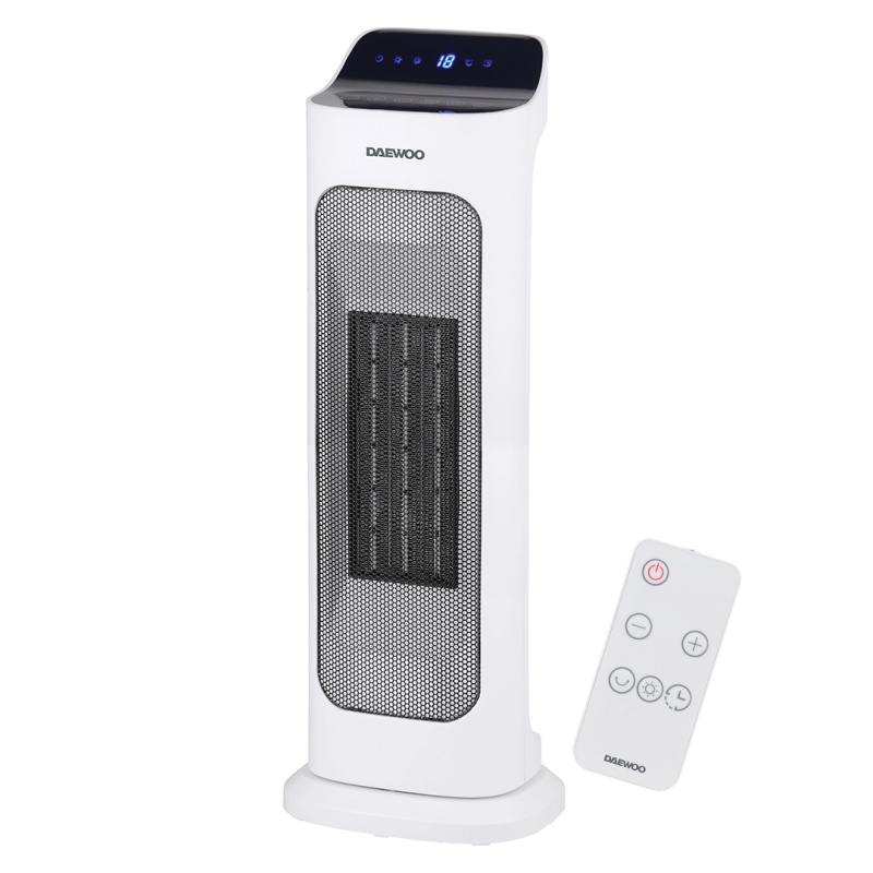 Elegantse disainiga Daewoo konvektoril on vastupidav ja efektiivne keraamiline küttekeha. Puldiga saab seadet mugavalt juhtida distantsilt. Võimalik seadistada tööaeg vahemikus 1-8 tund ja temperatuur 10°-35°C. 2 võimsusastet: 2000 W / 1400 W, horisontaalne liikumine alusel 45° ulatuses, vaikne, müratase max 50 dB. Ülekuumenemiskaitse. Värv: valge, must displei.