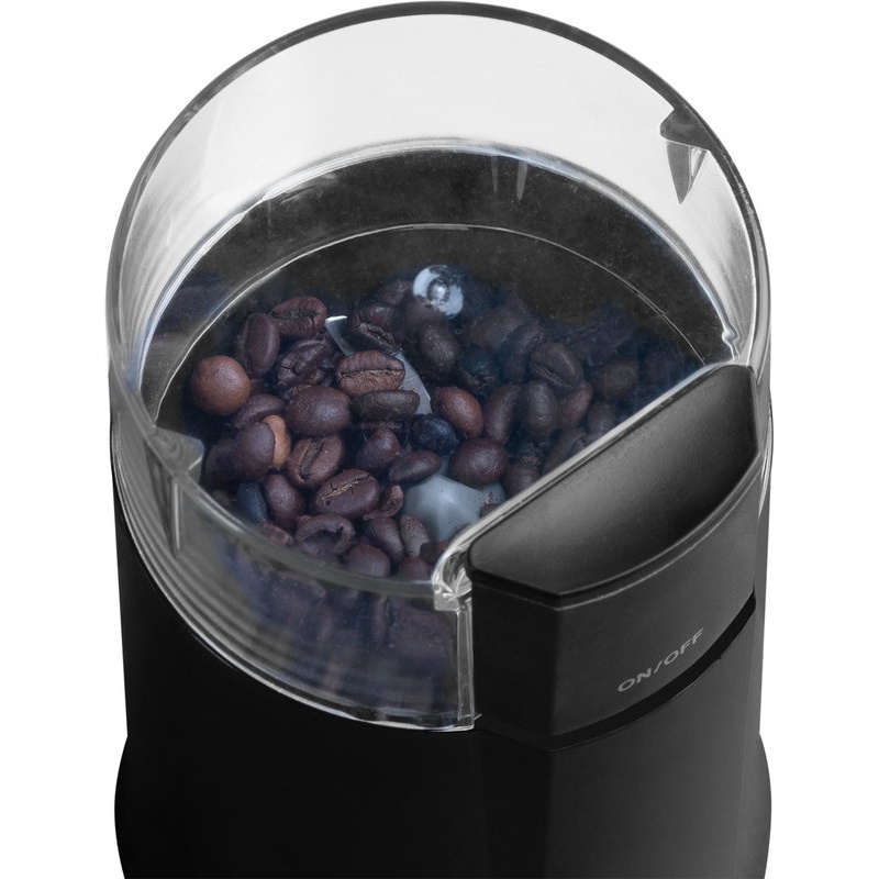 Sobib kohviubade, pähklite, teravilja, seemnete ja vürtside jahvatamiseks,Võimsus 200 W, mahutab kuni 50 g kohviube, roostevabast terasest tera, turvasüsteem - kohviveski ei käivitu kui kaas ei ole suletud, libisemiskindlad jalad, müratase vaid 66 dB, toitejuhtme pikkus ca 80 cm, värv must. Mõõtmed: kõrgus 19 cm, läbimõõt 11 cm.