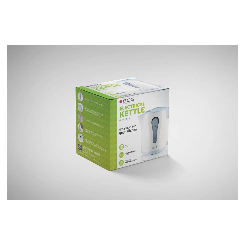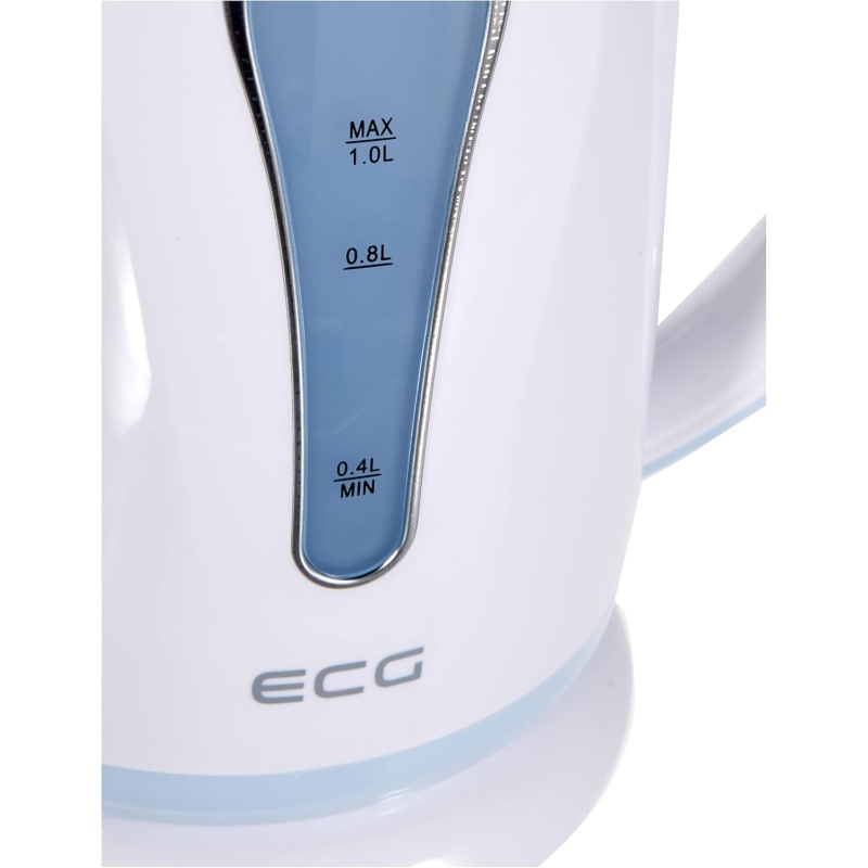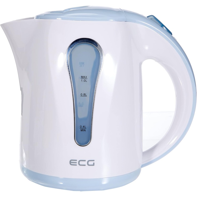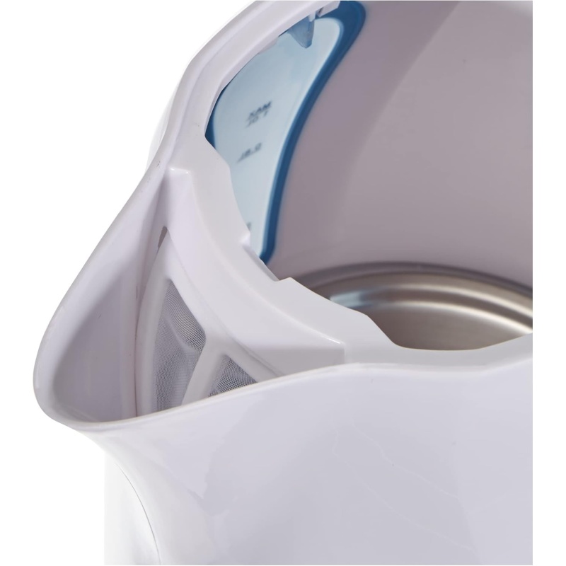 Võimsus 1100 W, 360° alusel pöörlev, kaetud kütteelement, katlakivifilter, automaatne väljalülitus, mahutavus max 1,0 l, värv helesinine/valge.