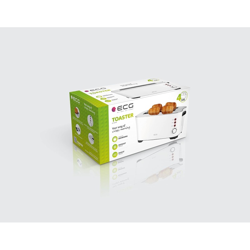 Võimsus 1350 W, kaks pikka pesa 4 viilu röstimiseks, 7-astmeline röstimisaja valik, soojendusfunktsioon ilma täiendava pruunistamiseta, LED-märgutuled, soojust isoleeriv korpus, saiapuru kandik, juhtmehoidik, toitejuhtme pikkus 95 cm, värv valge.