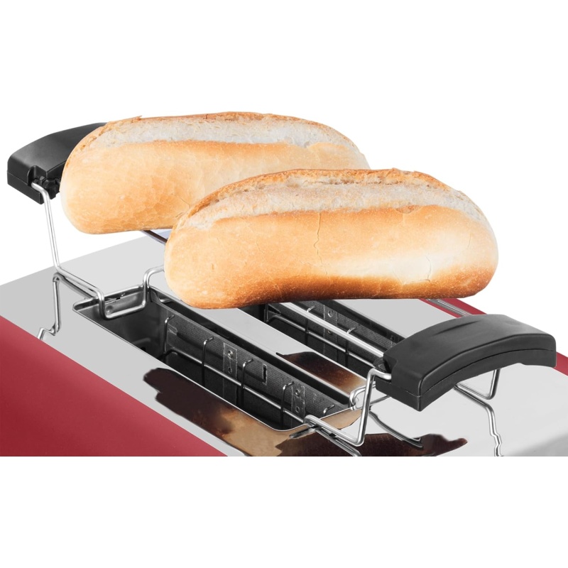 Klassikalises retrostiilis matti punast värvi röster võimsusega 900 W, roostevabast terasest pealispind ja otsad. 2 viilu rõstimine, soojendus- ja sulatusrežiim, kuklisoojendusrest, 6-astmeline röstimisaja valik, LED-valgustusega nupud, toitejuhtme pikkus 76 cm.