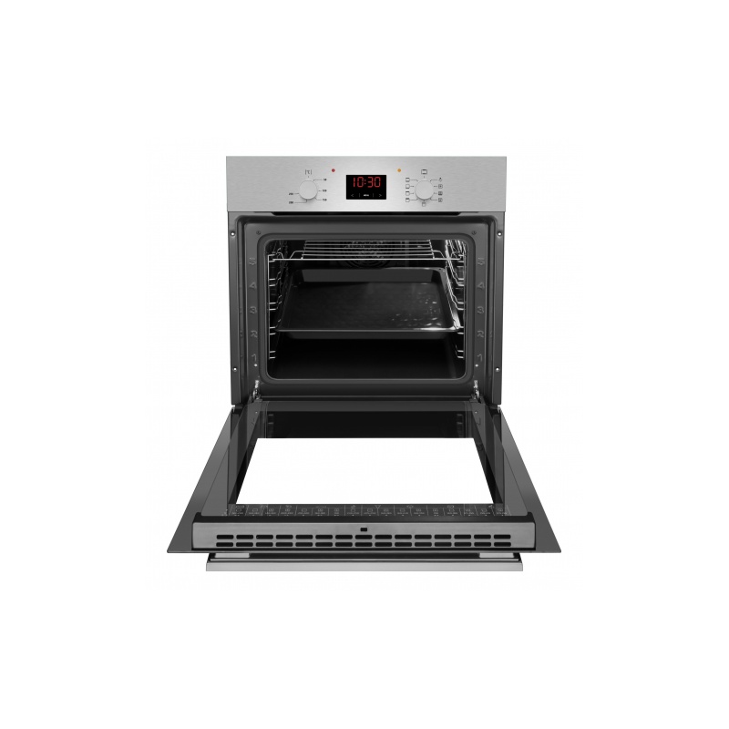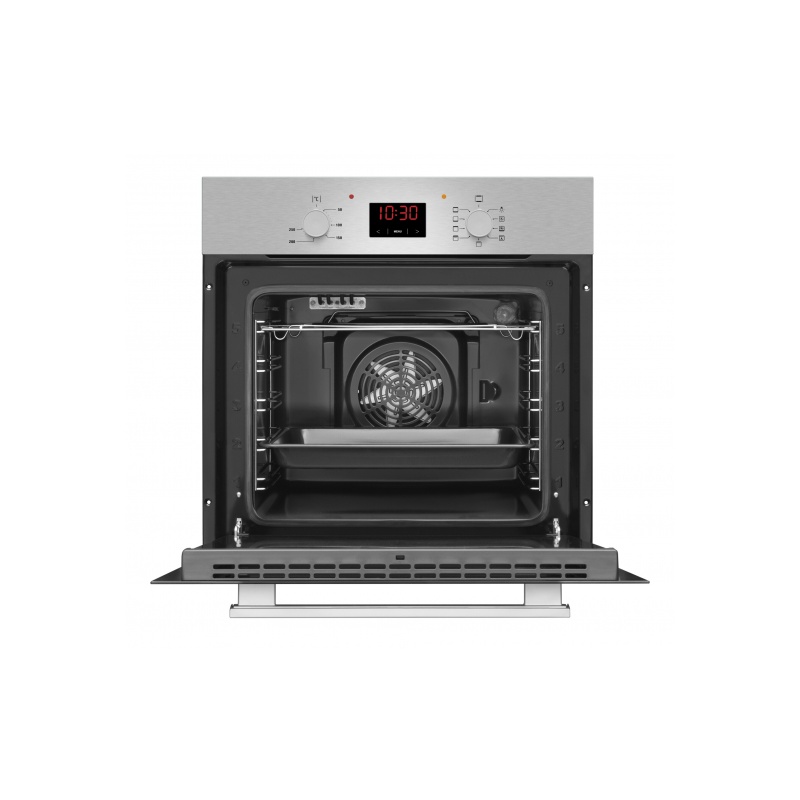 Elektrooniline juhtpaneel, A energiaklass, 8 programmi, ventilaatoriga küpsetamine, ahju sisevalgustus, auru- ja katalüütiline puhastus, ahju kiirkuumutus - 4 min. 150°C , retseptid ahjuukse siseküljel, sulatusf-n, kergesti puhastatav täisklaasist ahju siseuks, ahju maht 65 l, maksimaalne ahju temperatuur 250°C, k*l*s 59,5*59,5*57 cm, värv roostevaba teras