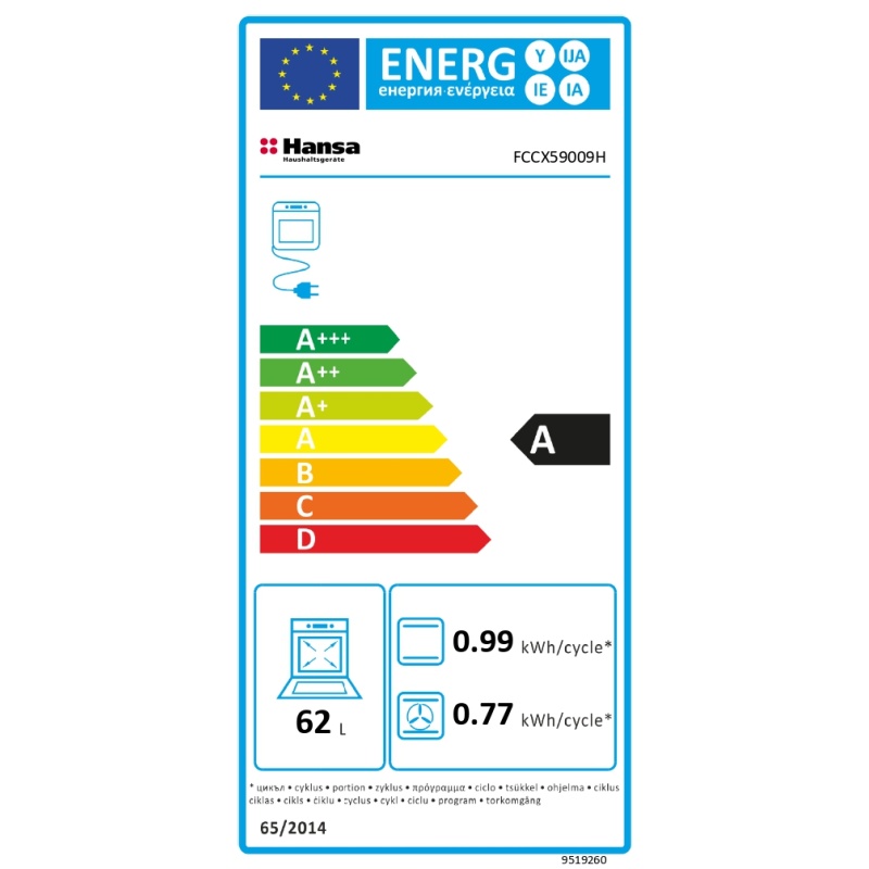 | Küpsetusahju maht | 62 l |