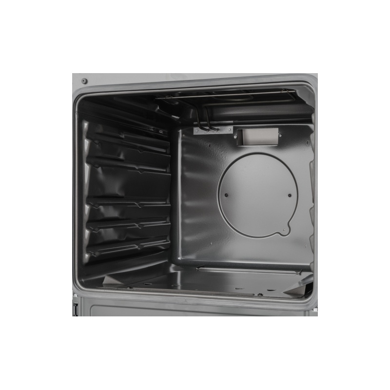 4 gaasipõletit, gaasilekke kontroll, gaasiahi, grill, ahju maht 67 l, ahju uks kahekordse klaasiga, 1 küpsetusplaat, 1 küpsetusrest, ahju kiirkuumutus, retseptid ahjuukse siseküljel, malmist anumate toed, nõude hoidmise ruum, k*l*s 85*50*60 cm, värv roostevaba teras