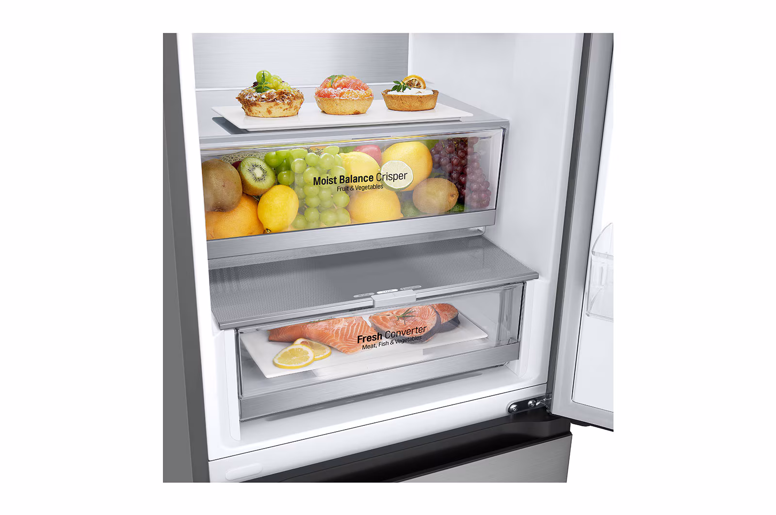 Moist Balance Crisper – sahtel on varustatud lihtsa lülitiga, mis reguleerib optimaalset niiskust puu- või köögiviljade pikemaks säilitamiseks.