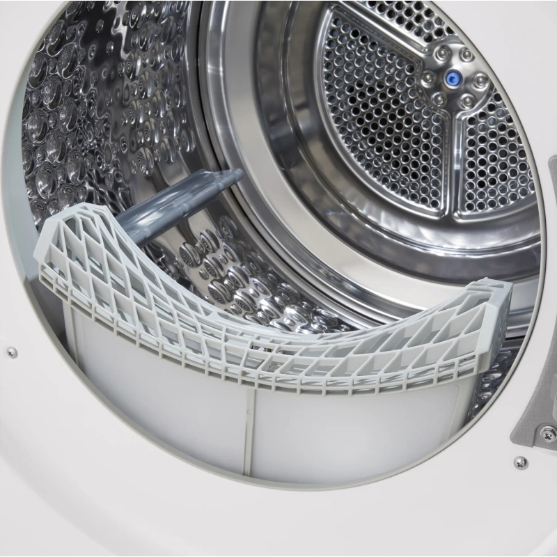 Dual invertermootoriga soojuspumbaga kuivati, B energiaklass, mahutavus 9 kg, trumli valgustus, puutetundlik LCD ekraan, 12 programmi, WiFi, viitstart, vahetatav uksepoolsus, lapselukk, 3 kuivatustaset, müratase 62 dB, k*l*s 85*60*66 cm, värv valge