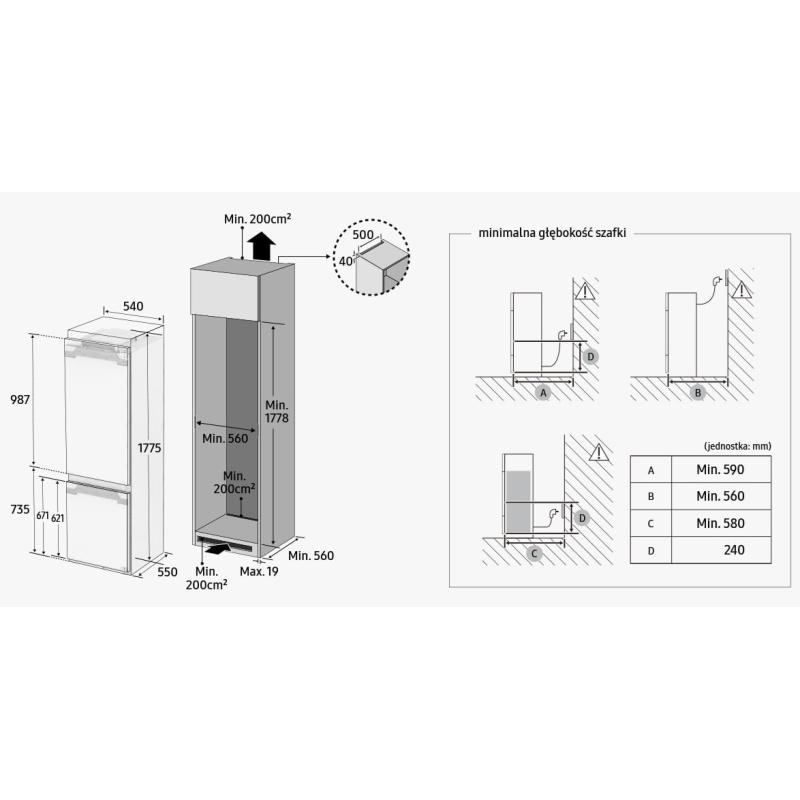 Samsung BRB80F26CES0EO integreeritav No Frost kombikülmik 177,5 cm, siinidel kinnitus, WiFi, 35dB