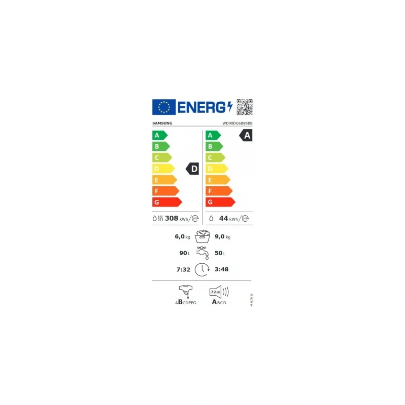 Samsung WD90DG6B85BBU4 pesumasin-kuivati 9/6 kg, 1400 p/m, auruf-n, WiFi, must