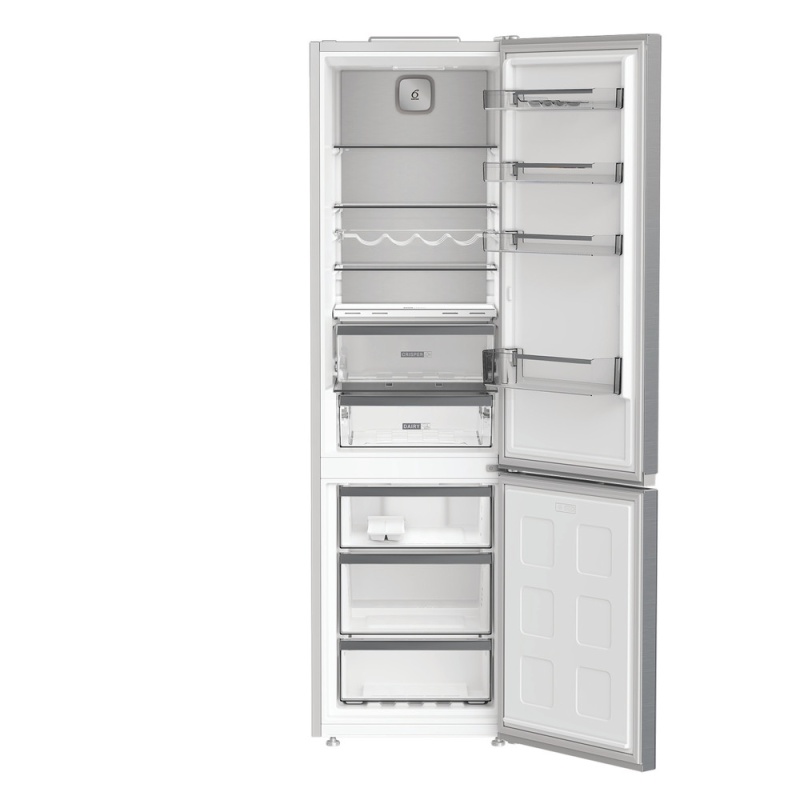 Külmik-sügavkülmik, mahutavus 355 l, millest sügavkülmik 106 l, dual No Frost, energiaklass C, välimine elektrooniline juhtsüsteem, kiirkülmutus, puhkuse reziim, külmapidavus 11 h, temperatuurialarm, müratase 35 dB, k*l*s 203,5*59,5*66,3 cm, värv roostevaba teras